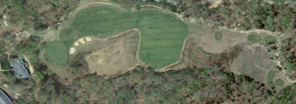 Occasionally, a road is just too dangerous. In such cases, guiderails and safety measures must be considered. Take a look at this 'softening' of the 8th at True Blue. What started in concept as an island green approach on the sketchpad (mikestrantzdesign.com), 'softened' to a hole with super tight pinches at the the dogleg and green (not to mention the creek in the B&W Google Earth image from 1999 after the initial opening). Finally, the current product shows the widened midsection and the creek long since buried underground. Still a brute, but much less hazardous to your health.